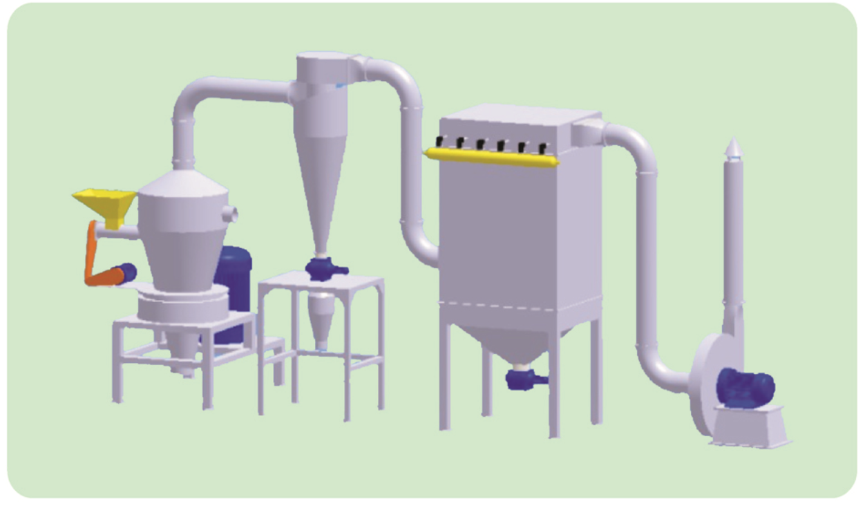 ② 可組成冷風(fēng)粉碎系統(tǒng):熔點較低的合成樹脂、塑膠或粉碎時容易發(fā)熱的物料,可配合冷風(fēng)冷卻粉碎。