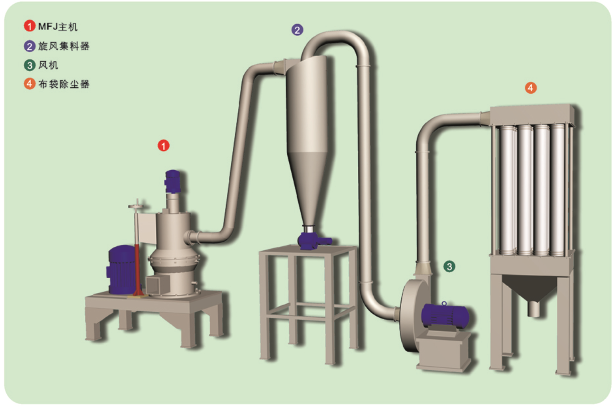 該機(jī)廣泛適用于常規(guī)物料的研磨粉碎,如高嶺土、石灰石、方解石、滑石、石墨等濕度小于8%、莫氏硬度在6級(jí)以下的非易燃易爆物料的超細(xì)粉碎加工,特別適用于木屑類、纖維物料的超細(xì)粉碎加工。