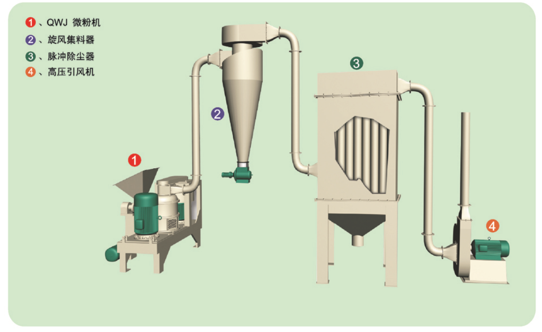 ① 本機(jī)是一種立軸反射型微粉碎機(jī),在粉碎室內(nèi)設(shè)有分級裝置,粉碎后的物料受氣流作用,經(jīng)分級裝置而收集,分級裝置取代通常粉碎機(jī)篩網(wǎng),能同時完成微粉粉碎和微粉分選的兩道加工工序,粉碎效率高。