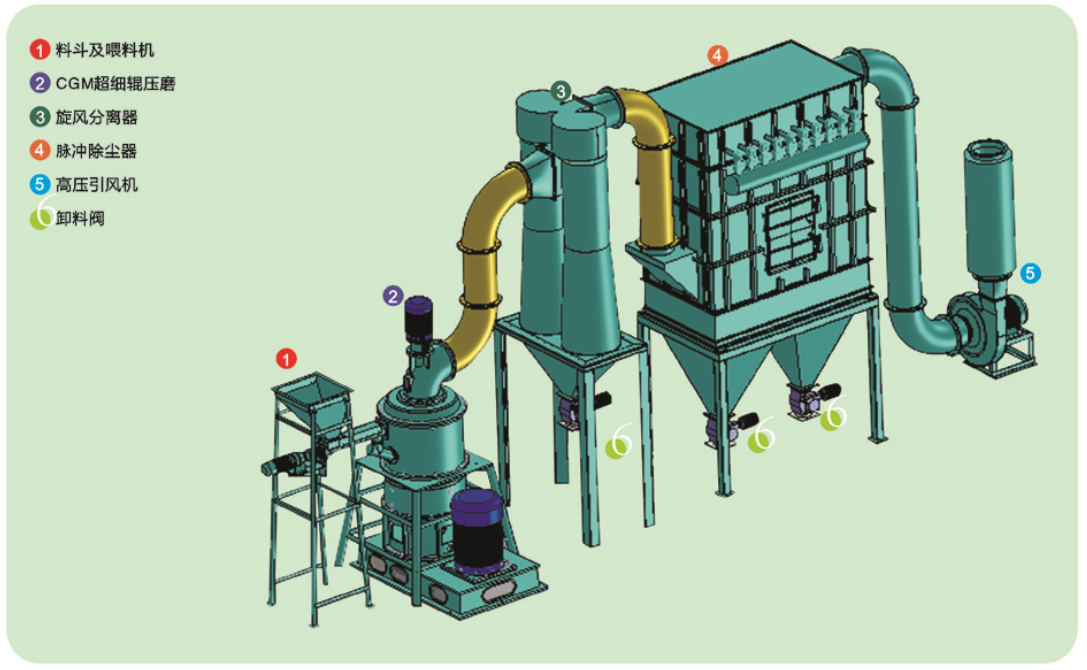 ① 與雷蒙磨、氣流粉碎機(jī)相比同等動(dòng)力條件下生產(chǎn)效率高一倍以上,磨輪對(duì)物料的碾壓力在高壓離心力的作用下提高30~40%。
